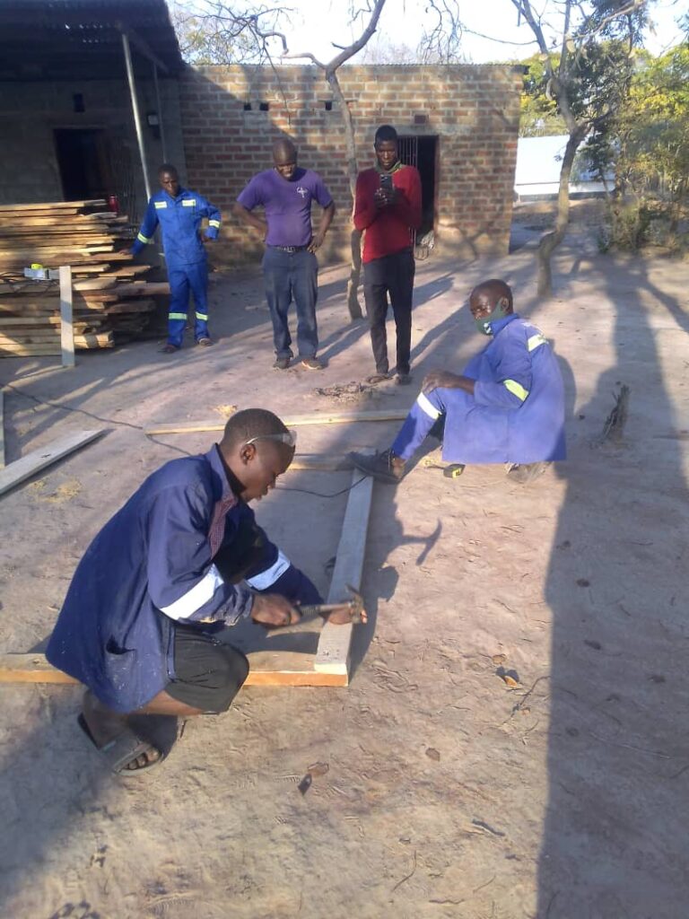 Daniel and his team also worked hard to upgrade the training centre, aiming to meet the Zambian training authorities’ standards to open sometime next year. They started to convert an old building into off-site temporary male dormitories; the main training thatched-roof building was converted into 2 classrooms and an office, and they added additional toilets and showers to the hostel block. The work was quite intense. They continue to work on the electrification, finishing and painting of the existing buildings.
